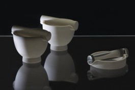 In this group of objects, repetitive CAD-driven processes contrast manual cyclical labor. The techniques that where applied include, among others, 3D-Printing as well as metal casting or lathing. A wide range of materials was used, like gypsum filament, acrylic resin, steel, porcelain, natural wool and alabaster.